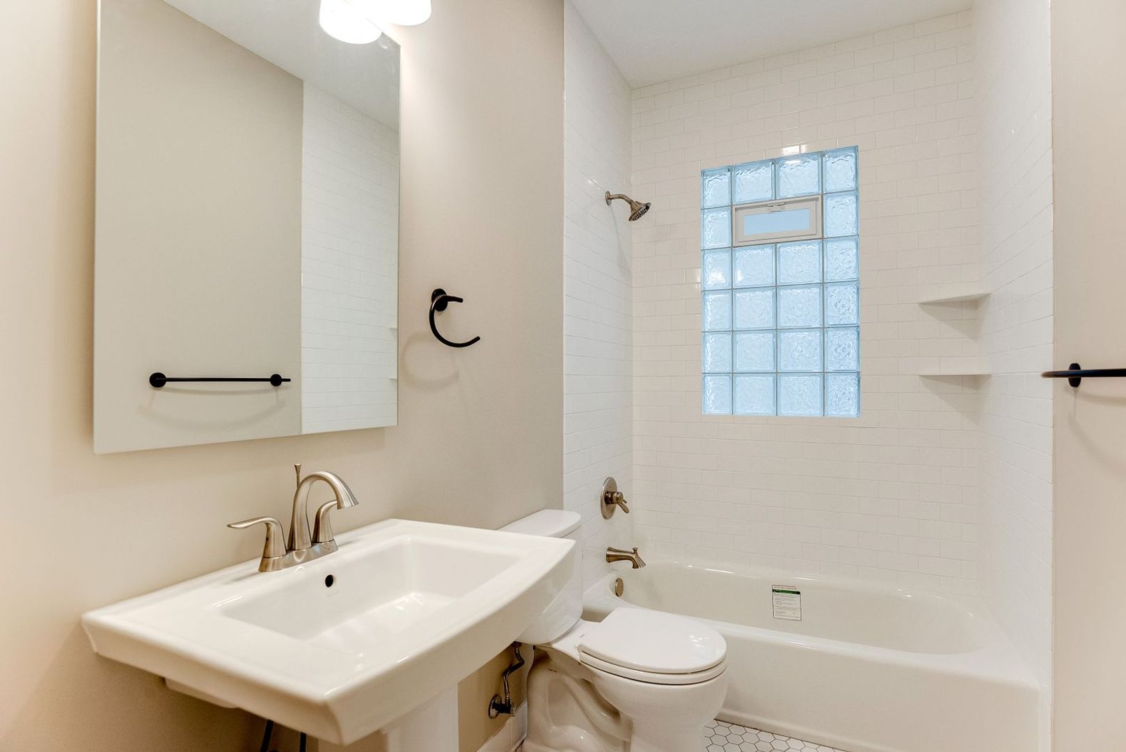 -BRAND NEW toilet, tub, sink and tile in bathroom