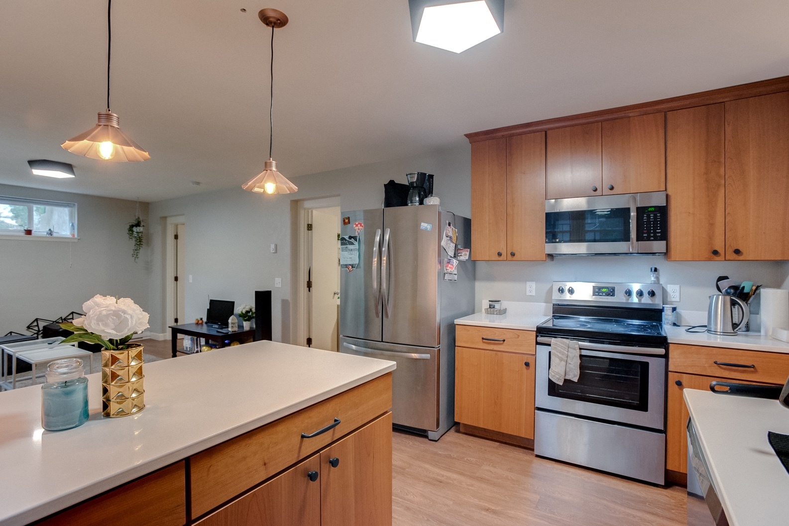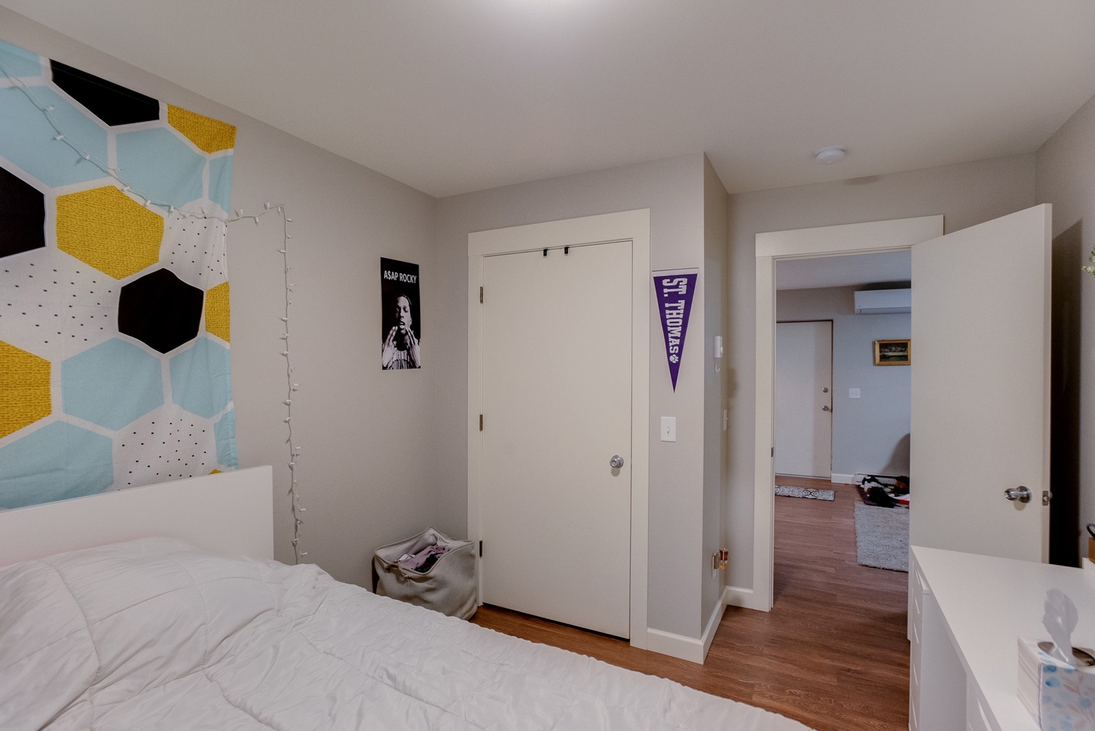 Beautiful 4 bed 2 bath apartment 5 blocks to St Thomas and about the same to Macalester. Open concept kitchen/livingroom with new kitchen, quartz countertop breakfast bar, high end stainless appliances. Nicely tiled baths one has a heated floor apartment has central A/C. Good sized bedrooms some off street parking and no parking permits required at this location.