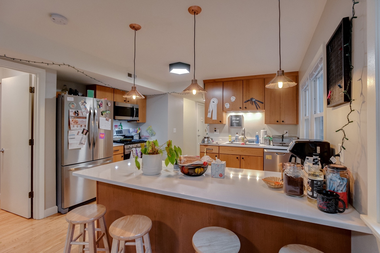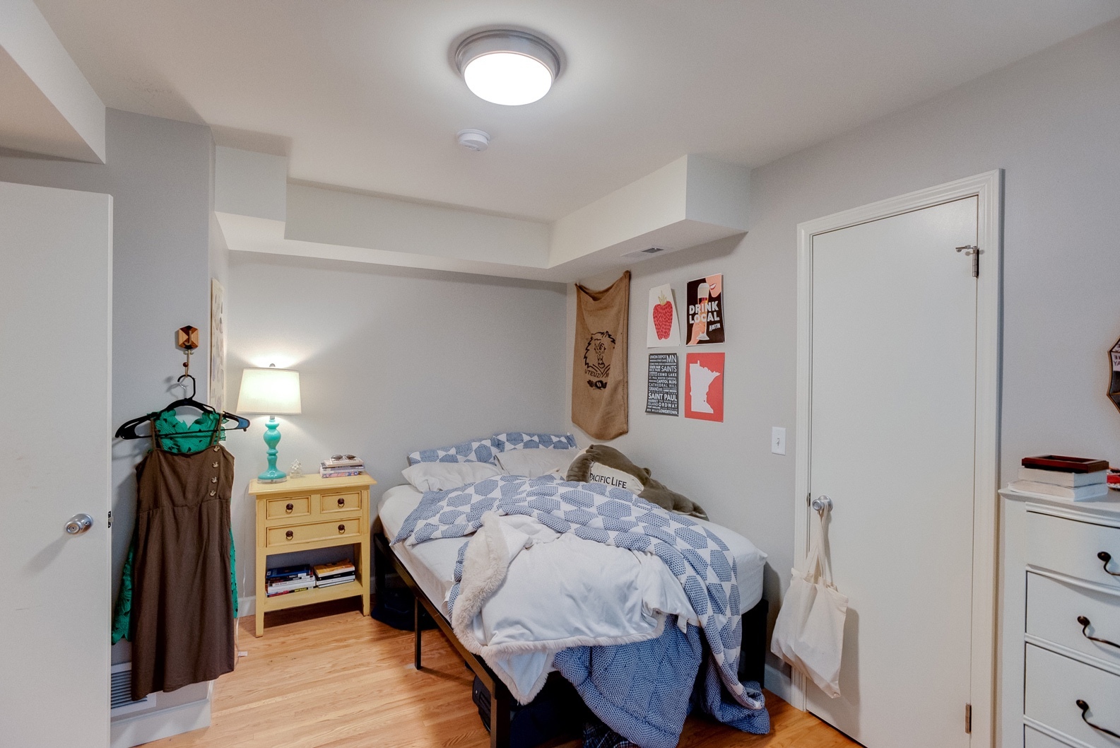 Beautiful 4 bed 2 bath apartment 5 blocks to St Thomas and about the same to Macalester. Open concept kitchen/livingroom with new kitchen, quartz countertop breakfast bar, high end stainless appliances. Nicely tiled baths one has a heated floor. Good sized bedrooms some off street parking and no parking permits required at this location.