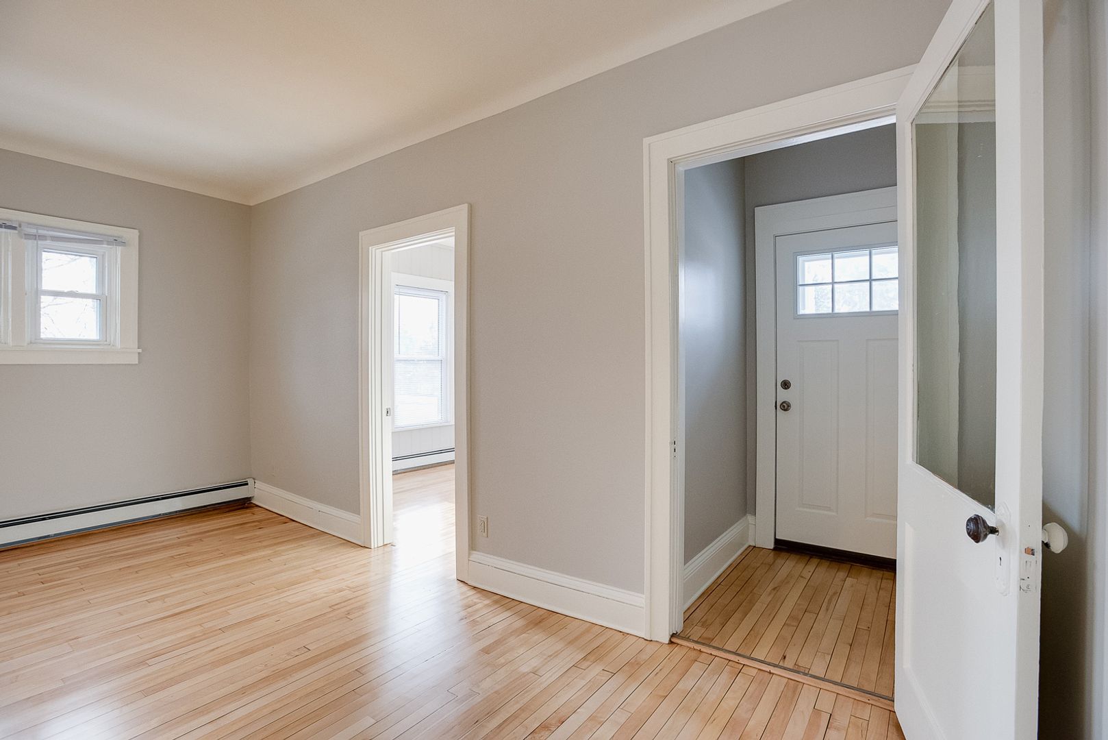 The units feature plenty of space and a great floor plan with a lot of space in the dining and living rooms. Front porch area would be a superb office in addition to the two bedrooms. The building has laundry facilities in the basement.