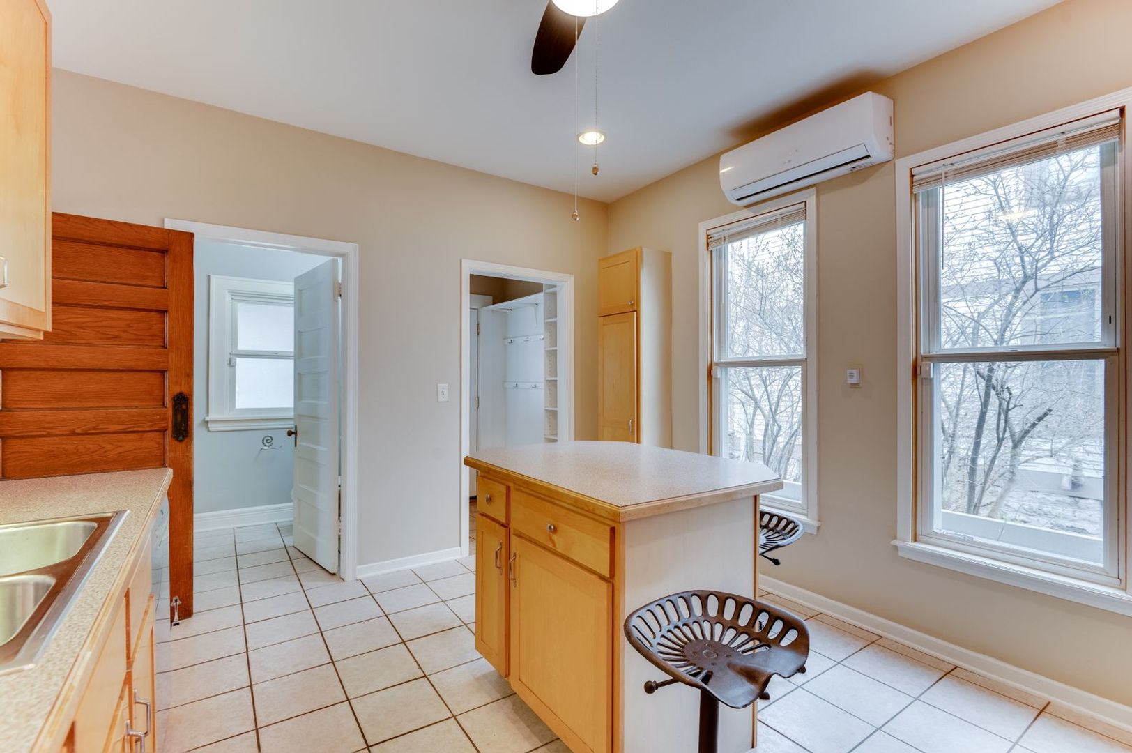 -spacious kitchen with heated floor, island bar and Bosch dishwasher