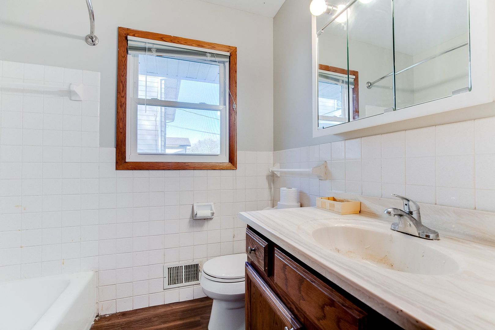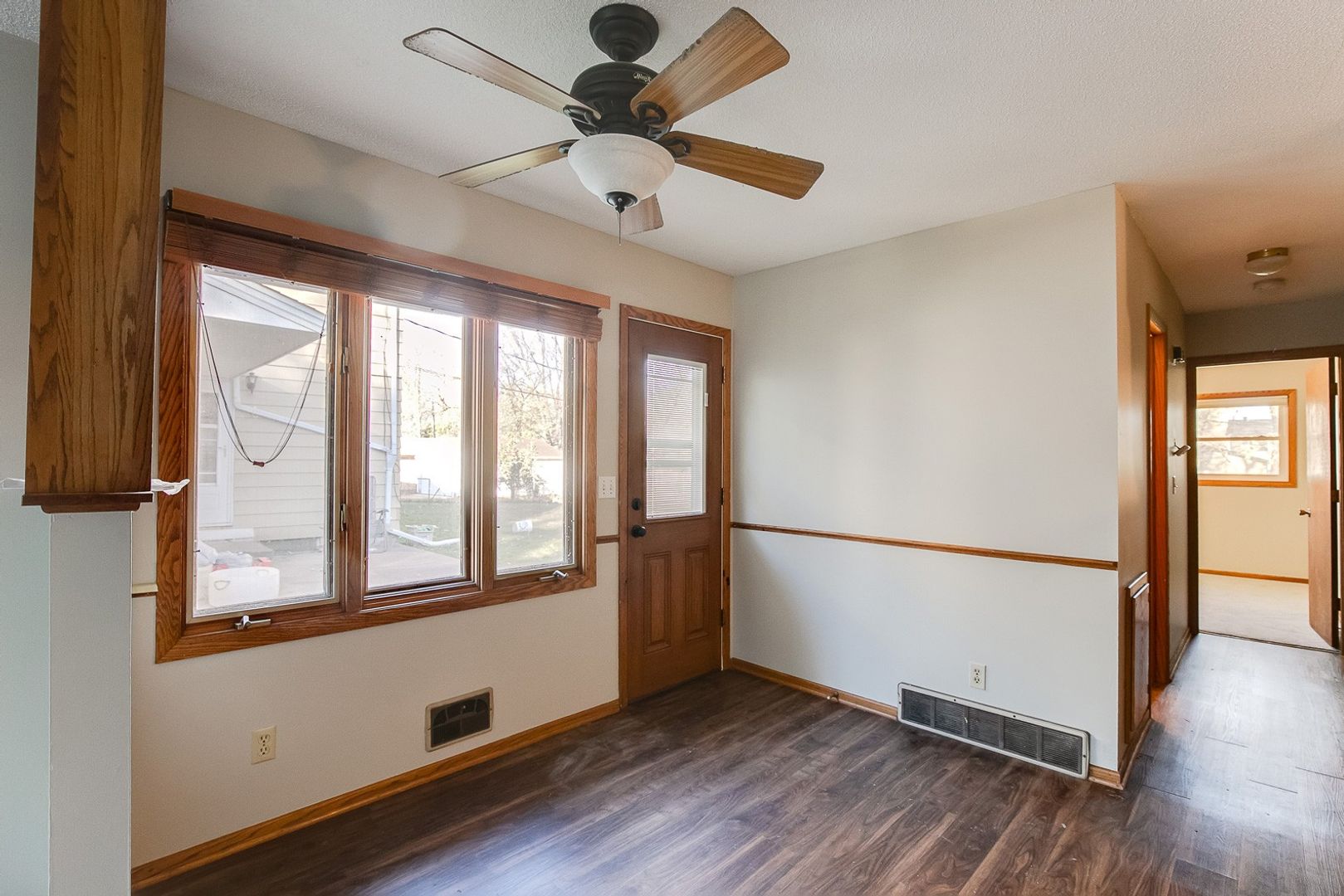 Open living room and basement, hardwood floors in bedrooms, and an absolutely enormous backyard! Other amenities include garage space, air conditioning (built-in wall unit in living room) and free washer and dryer on site.